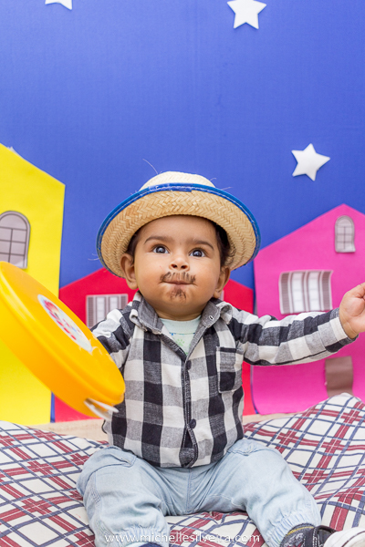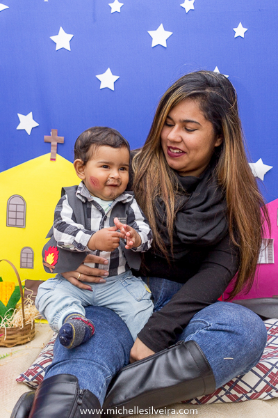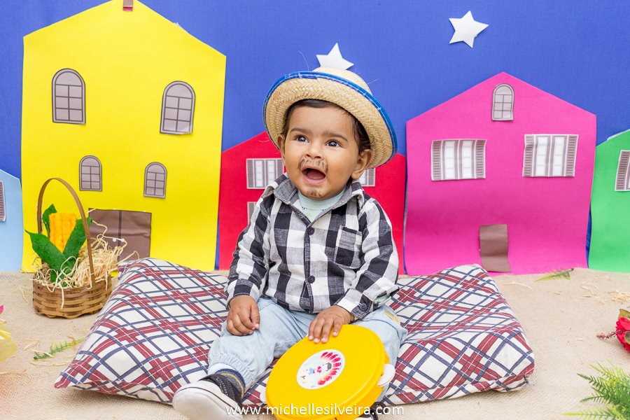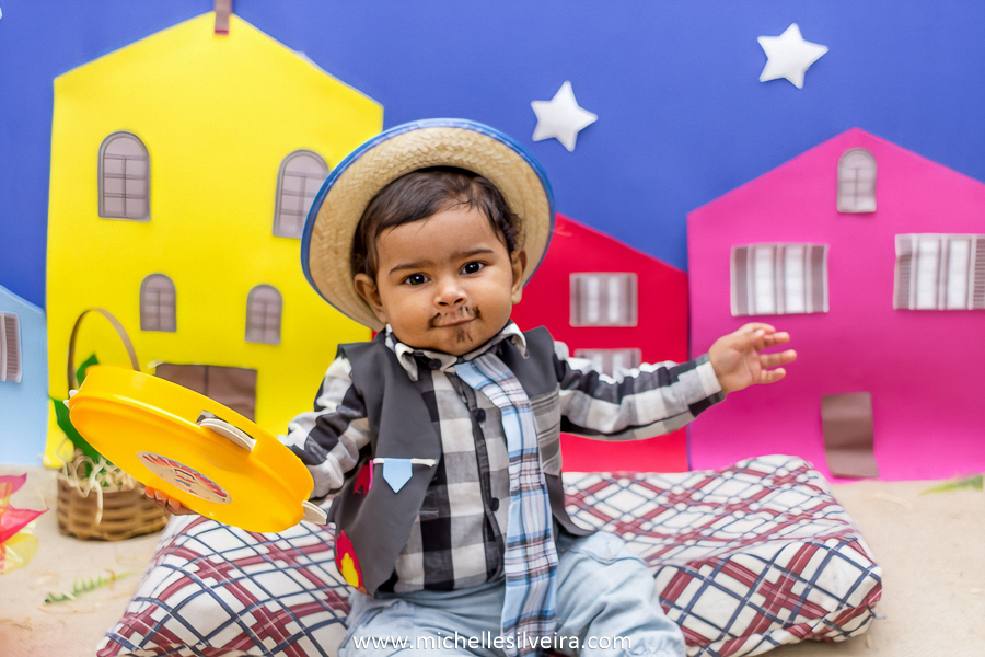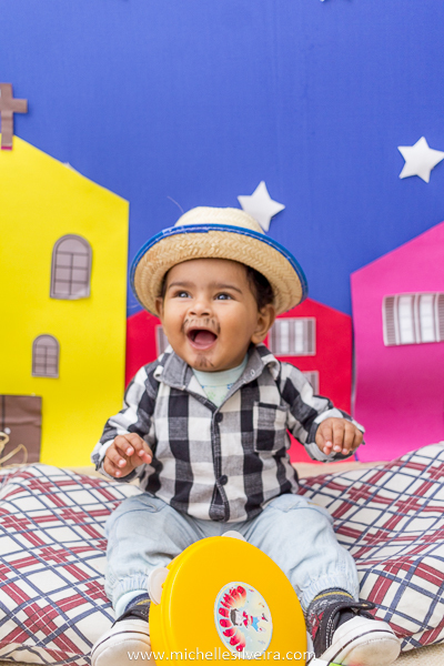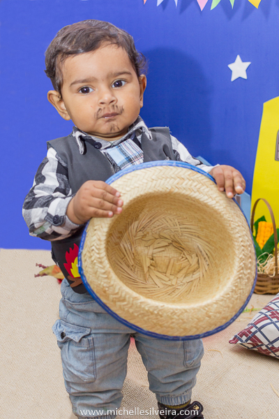 Um bebê todo caracterizado de caipira, eu não guento não gente!!